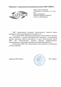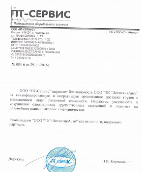 Ответственное отношение и оперативное предоставление услуг – основные положительные факторы нашего выбора в пользу «ЛогистикАвто». Теперь по грузоперевозкам будем сотрудничать с данными специалистами.