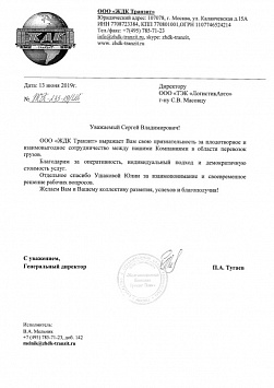 Хочу сказать спасибо за отлично проведенную работу по коммерческой перевозке. Менеджер Руслан обладает каким то невероятным запасом терпения ( мое бы точно лопнуло) ???? Мы меняли «явки -пароли» по техническим причинам и тем не менее все было проведено и быстро профессионально и качественно. Рекомендую.